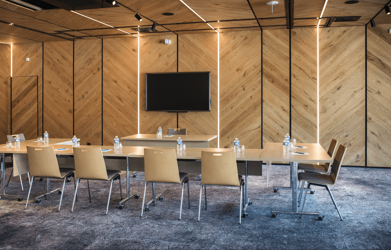 L’Auditorium du Base Camp Lodge Albertville est le nouvel espace modulable et connecté dédié à vos événements professionnels et privés, au croisement du confort hôtelier et de la performance technique.