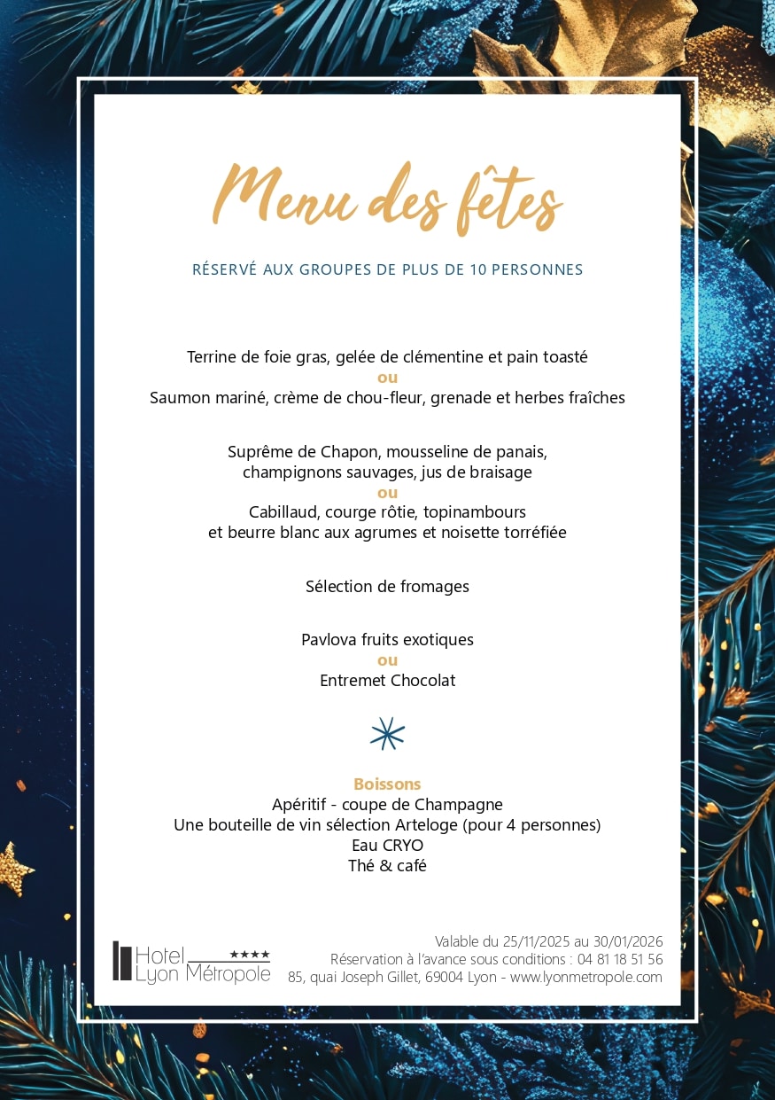 Accueil Blog Promotions Hôtel Lyon Métropole : offres spéciales séminaire et menu des fêtes