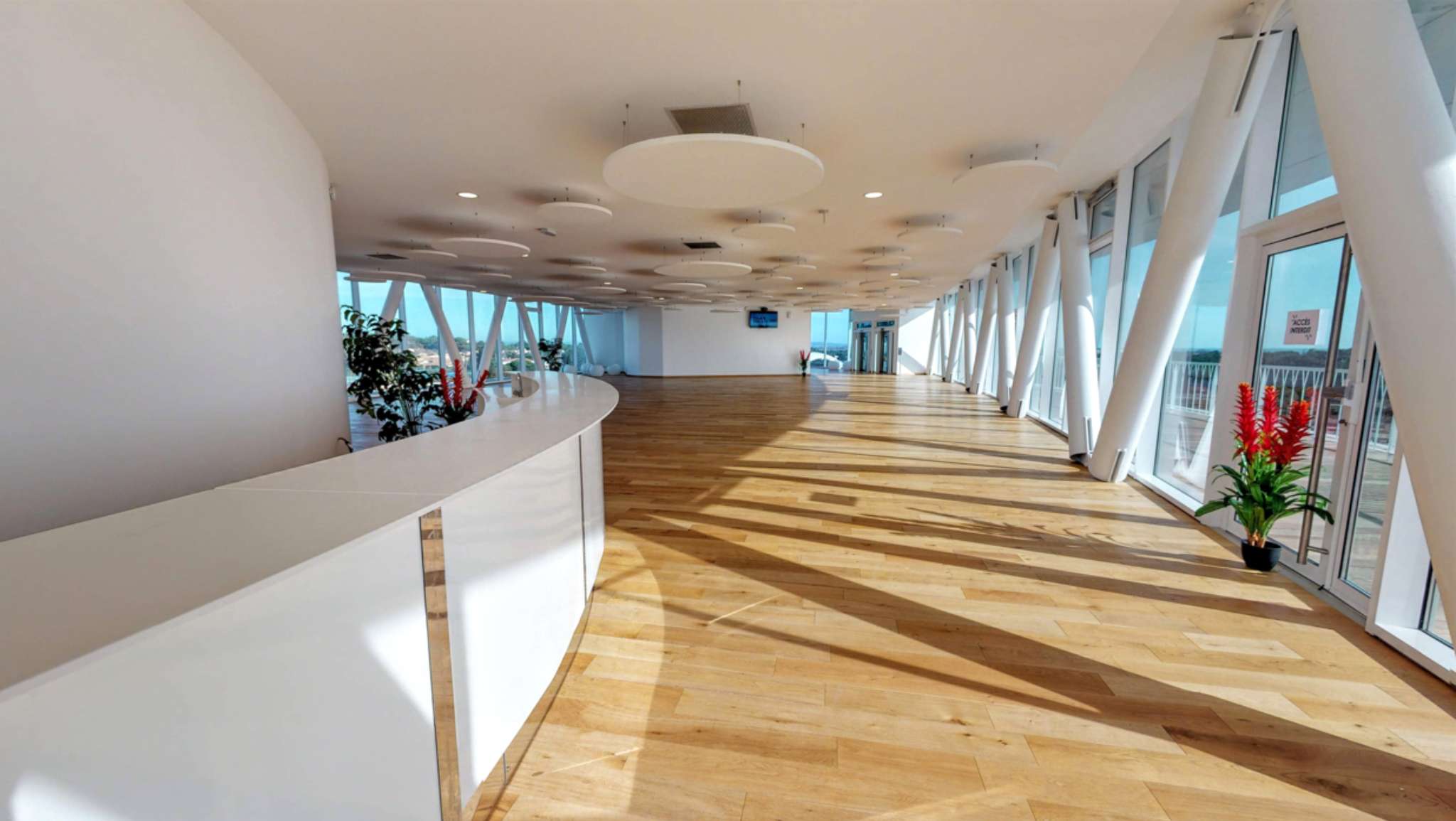 Les infrastructures comprennent : • un hall d’accueil de plus de 300 m² • un espace d’exposition de 318 m² • un auditorium de plus de 1 000 m² pouvant accueillir jusqu’à 1 200 personnes, idéal pour congrès, conventions et séminaires • un espace de réunion modulable de 340 m² pour commissions et sous-commissions • un patio extérieur de 1 500 m², parfait pour les pauses, cocktails ou réunions en plein air • un salon panoramique de près de 400 m², offrant une vue spectaculaire à 360° sur le Cap d’Agde, le Mont Saint-Clair • Pour accueillir les intervenants et personnalités dans les meilleures conditions, cinq loges entièrement équipées sont également mises à disposition.