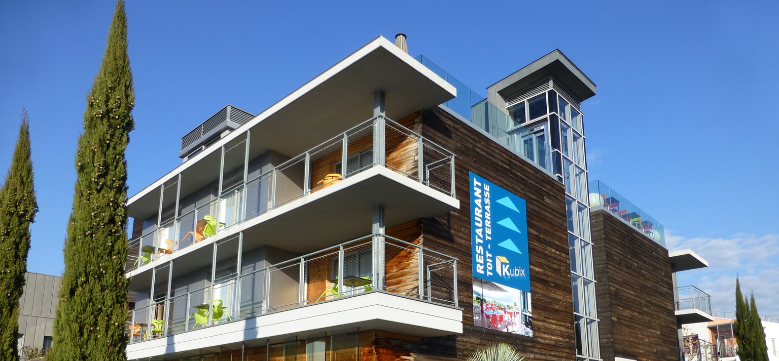 L’hôtel Aquakub est un hôtel 3 étoiles au design contemporain, situé au bord du lac du Bourget à Aix-les-Bains, offrant 50 chambres spacieuses et un restaurant panoramique avec vue imprenable sur le lac et les montagnes.